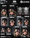 PLEASE READ CAREFULLY! Here is a comparison between prototype and production version of 1992 catwoman. We will change the eyeballs to more glossy ones and tweak the paint a bit to improve. Please note that the basic head sculpts are 100% the same (see 3d render left and right). There are differences in lighting color, camera, light angles, focal length and many other things between the two pictures. But it should give you an idea of where we are at. Things will only get better. MORE TO COME SOON!